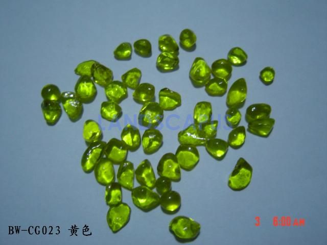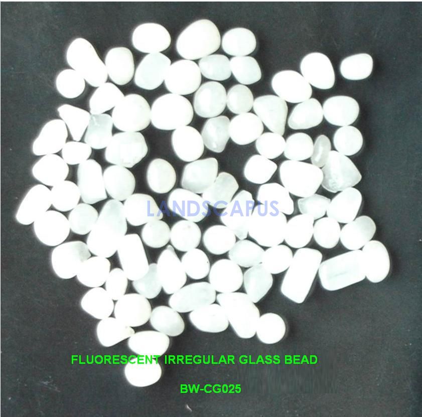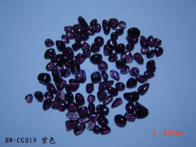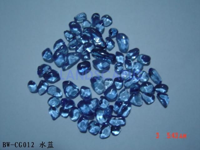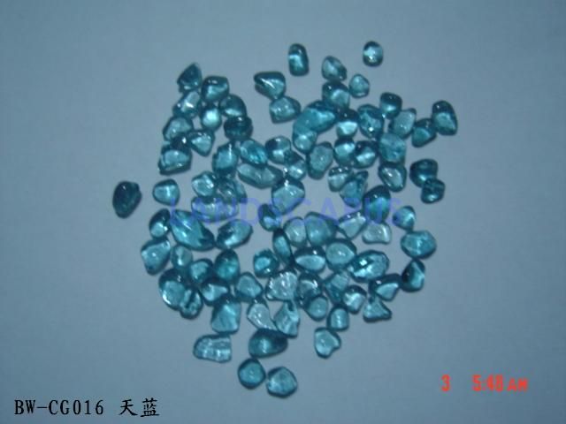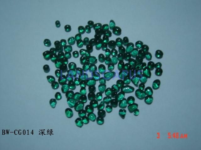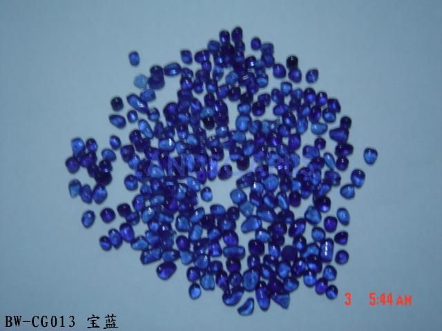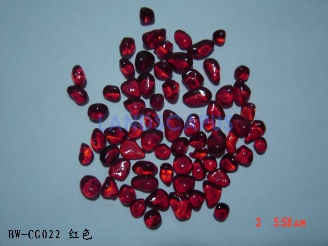 Irregular Color Glass Beads Color glass bead /Glass Grit/Cullet/Fire glass is a new kind of material for deluxe decoration. This Kind of beads are made of glass powder in different colors. It is used in the kitchen counter-tops, Terrazzo, Landscaping, aquariums, fire pits, exterior walls decoration, courtyards, footpaths and swimming pools.It will be dazzling and resplendent when the sunlight or lamplight is shining on it. We have more than 30 kinds of colors.